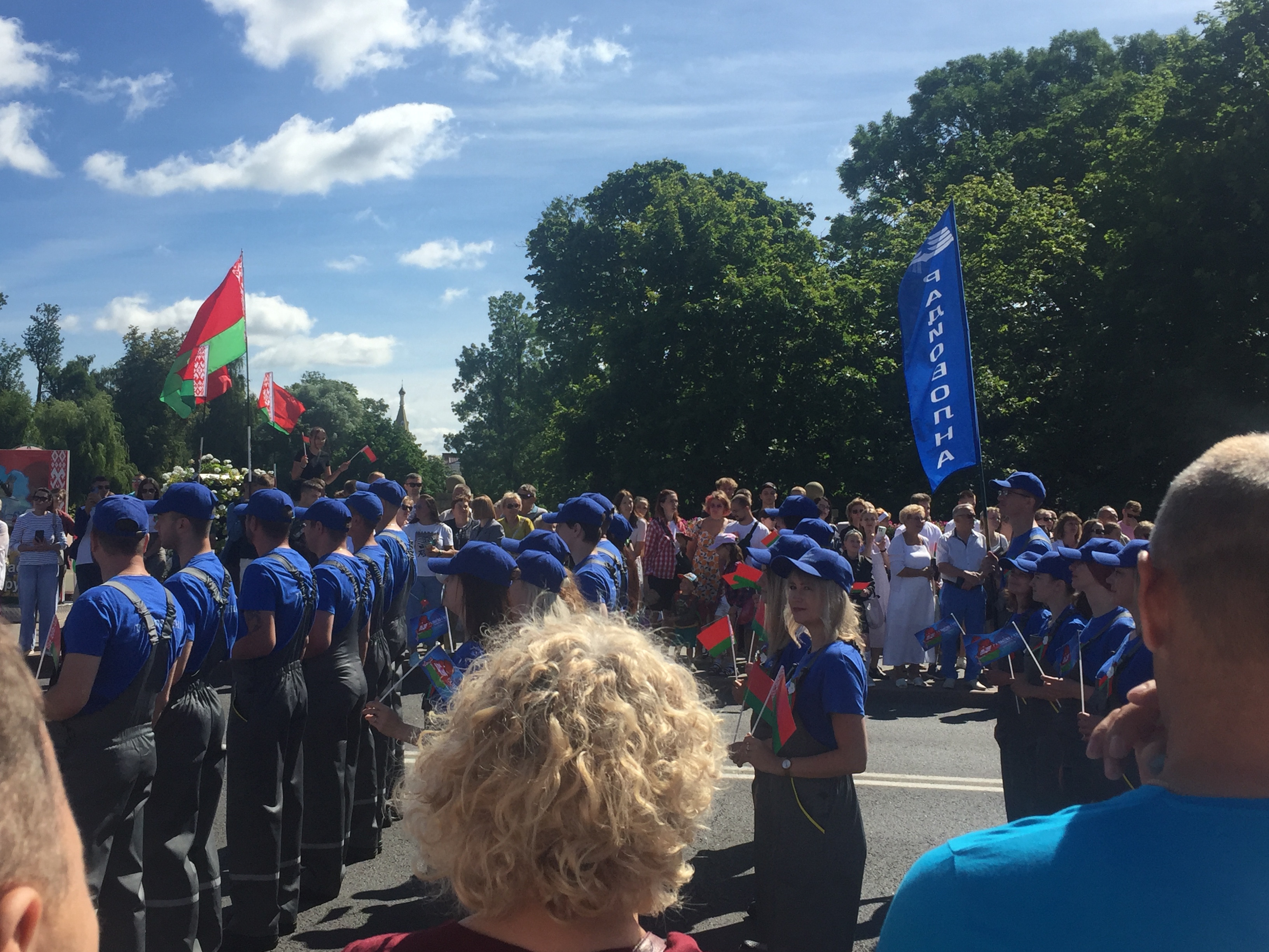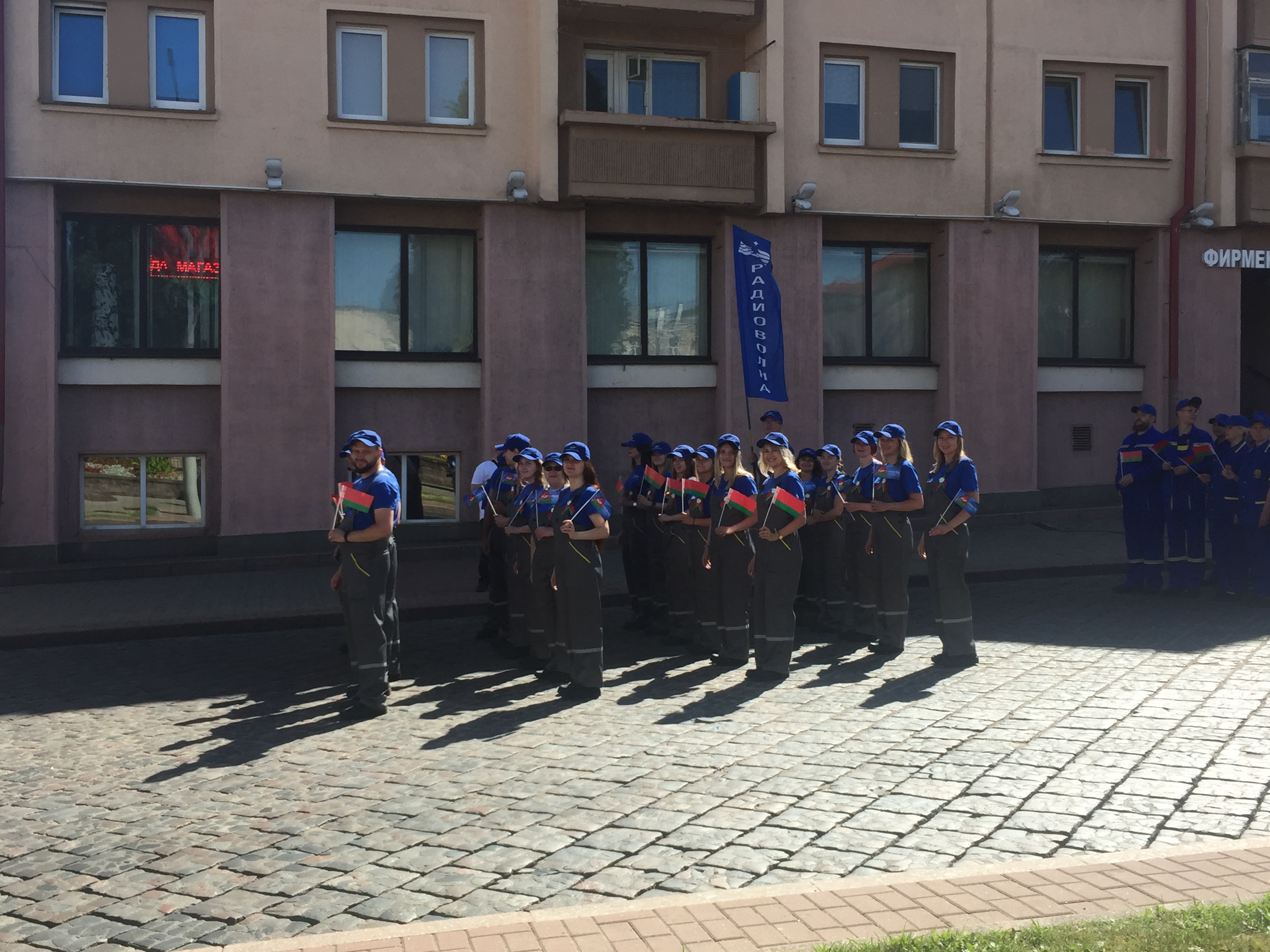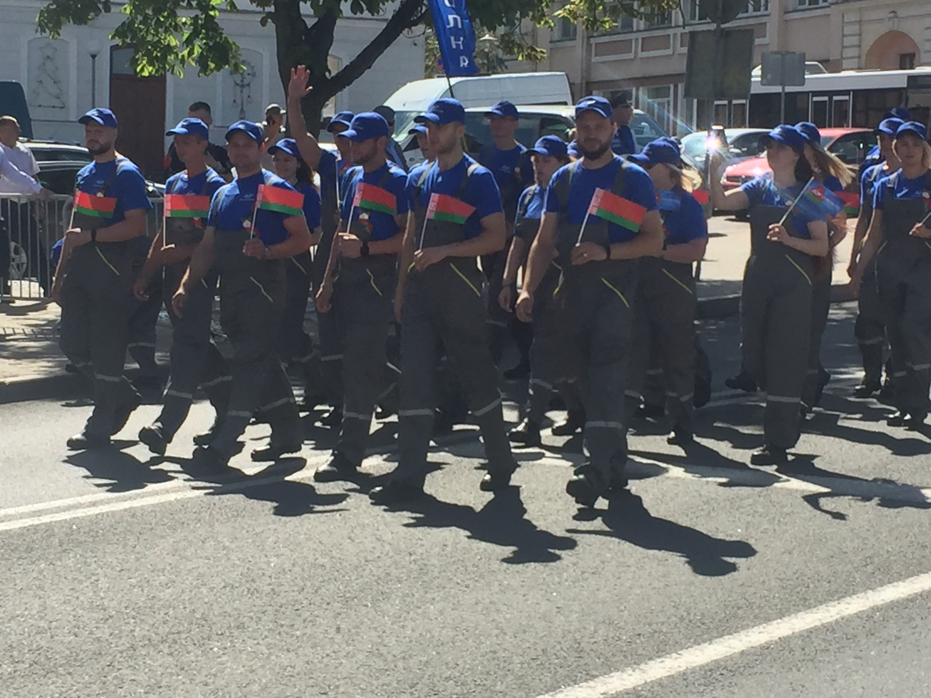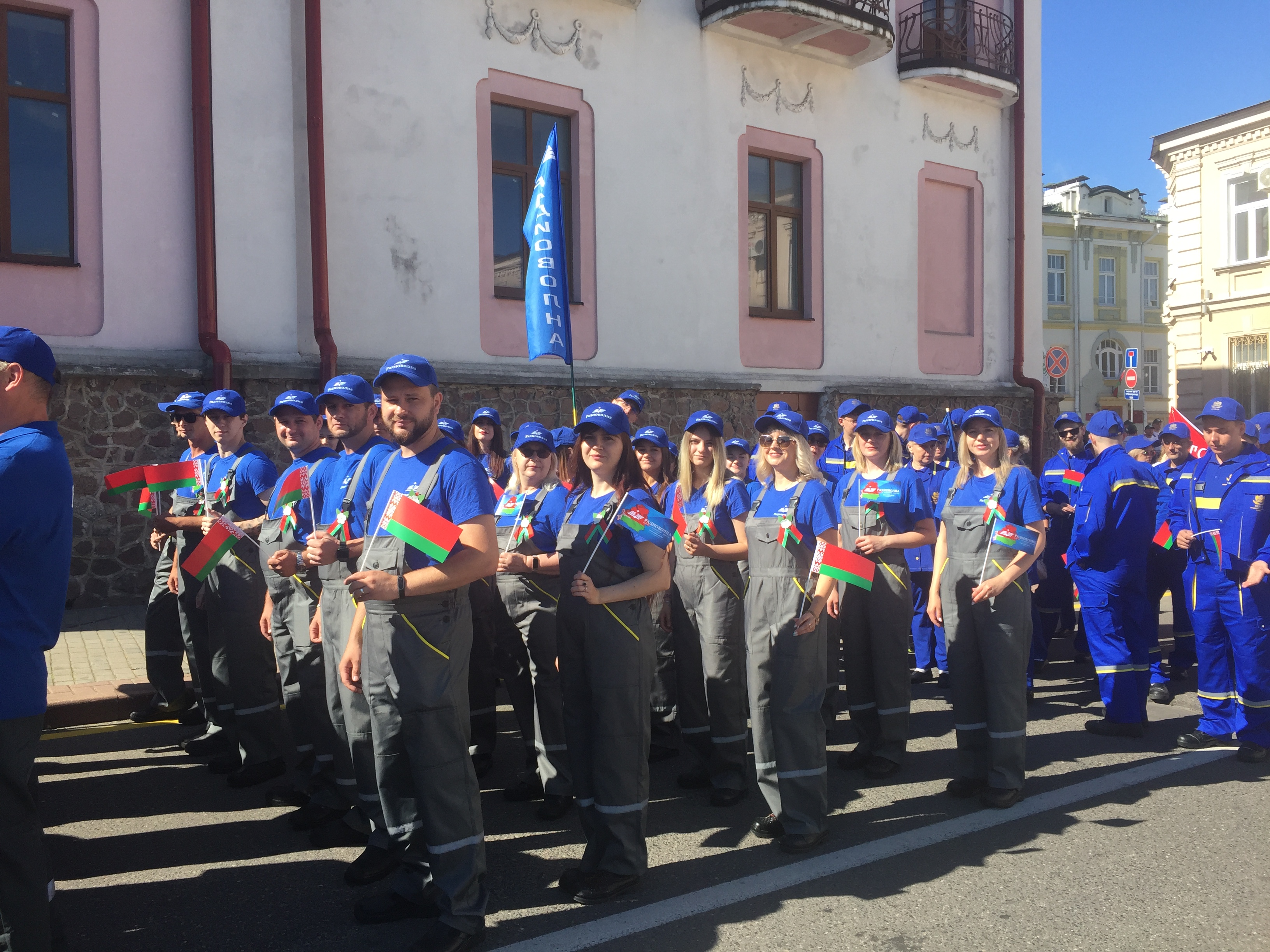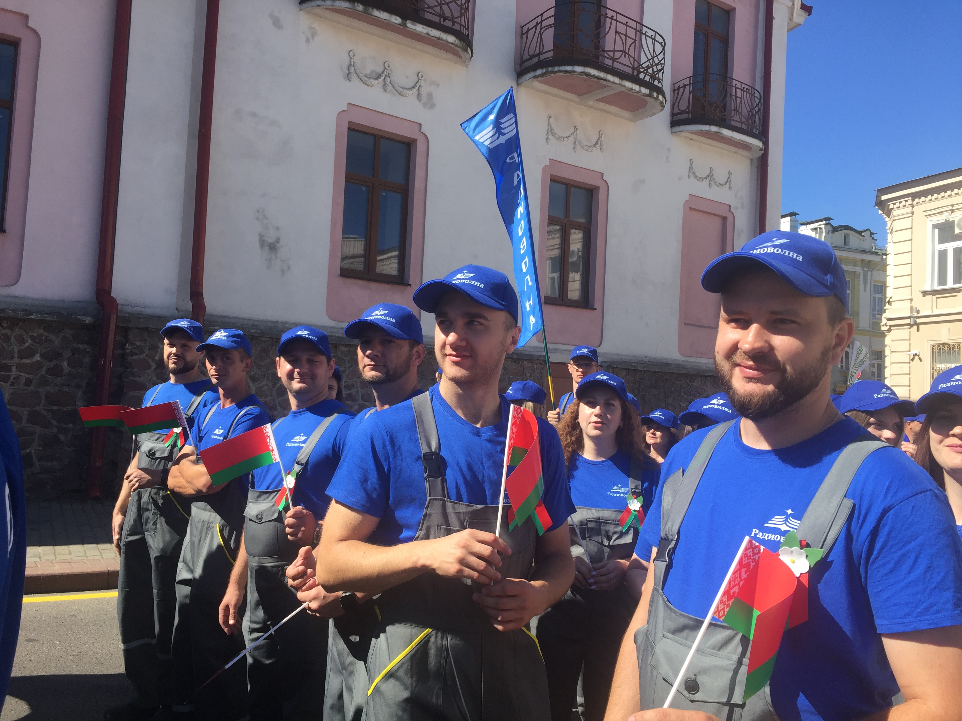 Утром мирный автопарад «Живые картины» продолжился шествием трудовых коллективов города. Промышленность представили ОАО «Гродно Азот», ОАО «Белкард», ОАО «Гродненский механический завод», ОАО «Радиоволна», ОАО «Гродненская табачная фабрика «Неман». 24 представителя предприятия в фирменной рабочей одежде ОАО «Радиоволна» торжественно прошли в шествии трудовых коллективов с улицы Социалистической по улице Дзержинского.